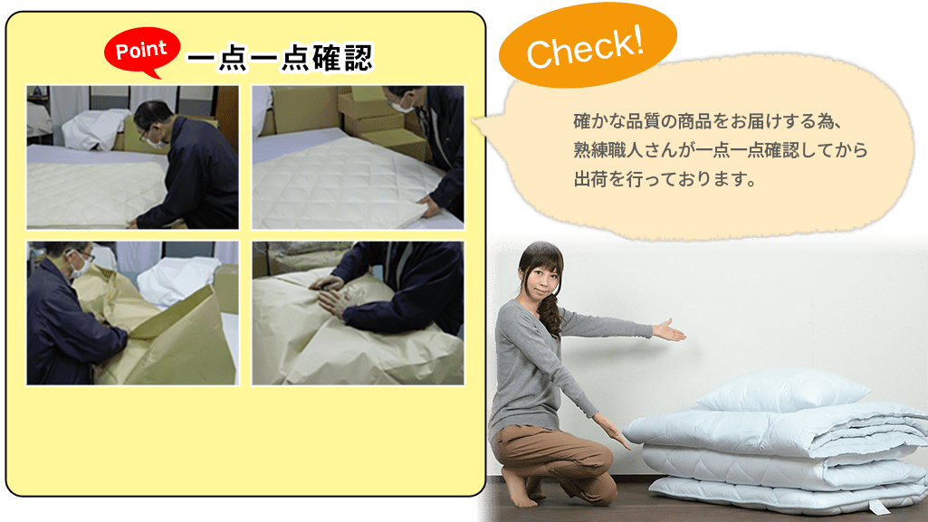 お客様の声の中で特に多かったのが「ダニ対策布団を購入したけど2年でダメになった」「通販だと粗悪な物が送られてきそうで心配」という声でした。